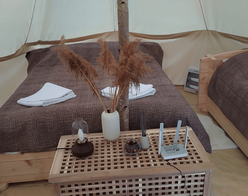 Каждый шатёр оборудован всем необходимым для комфортного проживания
